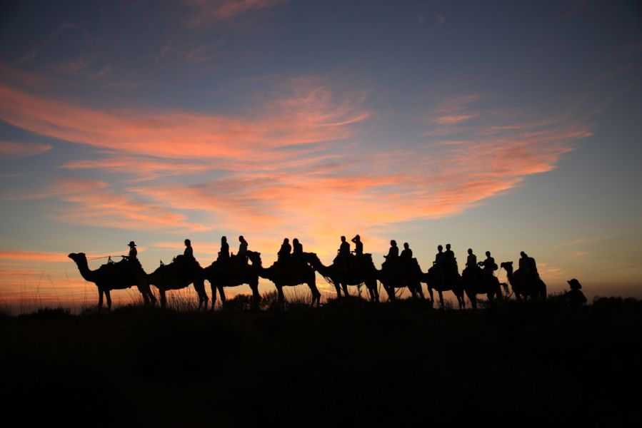 Admire the magical desert sunrise on a guided camel ride around Uluru!